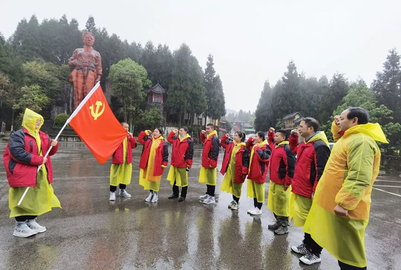 啟動(dòng)之際,黨支部書(shū)記主持小會(huì),強(qiáng)調(diào)活動(dòng)目的與意義,發(fā)揮民主,商議落實(shí)人員分工、時(shí)間安排等。漫長(zhǎng)的車(chē)程里,《黨啊,親愛(ài)的媽媽》《沒(méi)有共產(chǎn)黨就沒(méi)有新中國(guó)》,一首首歌頌黨的歌曲從黨員們的心窩里飛出,唱響對(duì)黨的熱愛(ài)之情。慶祝中國(guó)共產(chǎn)黨成立100周年在華鎣山起義紀(jì)念館里,我們翻閱歷史畫(huà)卷,踏尋先烈的崢嶸歲月,感受英雄們那熠熠閃光的革命精神。