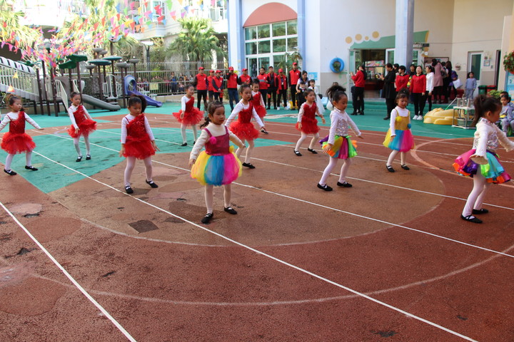 在活動(dòng)的開始階段,大班的姐姐們?yōu)榇蠹規(guī)砹宋璧?/span>SHOW!快看他們的身影多么絢爛多彩呀!