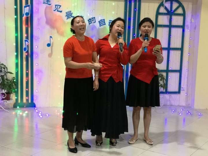 在舞臺上,老師們都盡情的展現(xiàn)自我,用悅耳的歌聲表達(dá)出了對青春的熱愛、對生活的追求、對工作的堅(jiān)守,更表達(dá)了對歌唱的喜愛。整個(gè)活動現(xiàn)場充滿了歡快的氣氛。