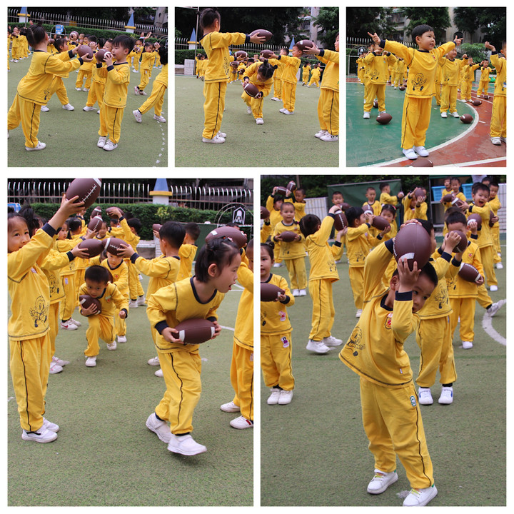 小班早操為器械操《小小聯盟隊》為原創(chuàng)早操,根據幼兒的年齡特點,我們選取了“橄欖球”進行早操練習。在操節(jié)的設計中,以“成長探索”為主題,注重大肌肉與小肌肉發(fā)展的有效結合,動與靜的搭配,同時在操節(jié)中,鍛煉幼兒的拋接球能力,同伴間的合作能力,使每個幼兒能在愉悅的氛圍中得到鍛煉。