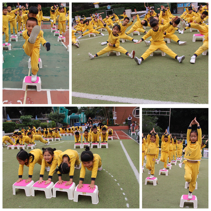 大班早操為體能操《凳子操》,本學期根據大班幼兒現發(fā)展水平,我們選取了2015年第二學期大班“凳子操”進行改編,在早操編排上大膽創(chuàng)新,采用方凳為主要器械,本套操重點體現幼兒間的互助合作、發(fā)展幼兒基本動作,培養(yǎng)勇敢自信等優(yōu)良品格和活潑開朗的性格,遵循動作內容豐富形式多變、體現“活”,遵循“曲線上升、波形進展、曲線下降”的規(guī)律,進行創(chuàng)編改造,具體內容包括:隊列練習、基本操節(jié)、體能鍛煉、整理放松活動。