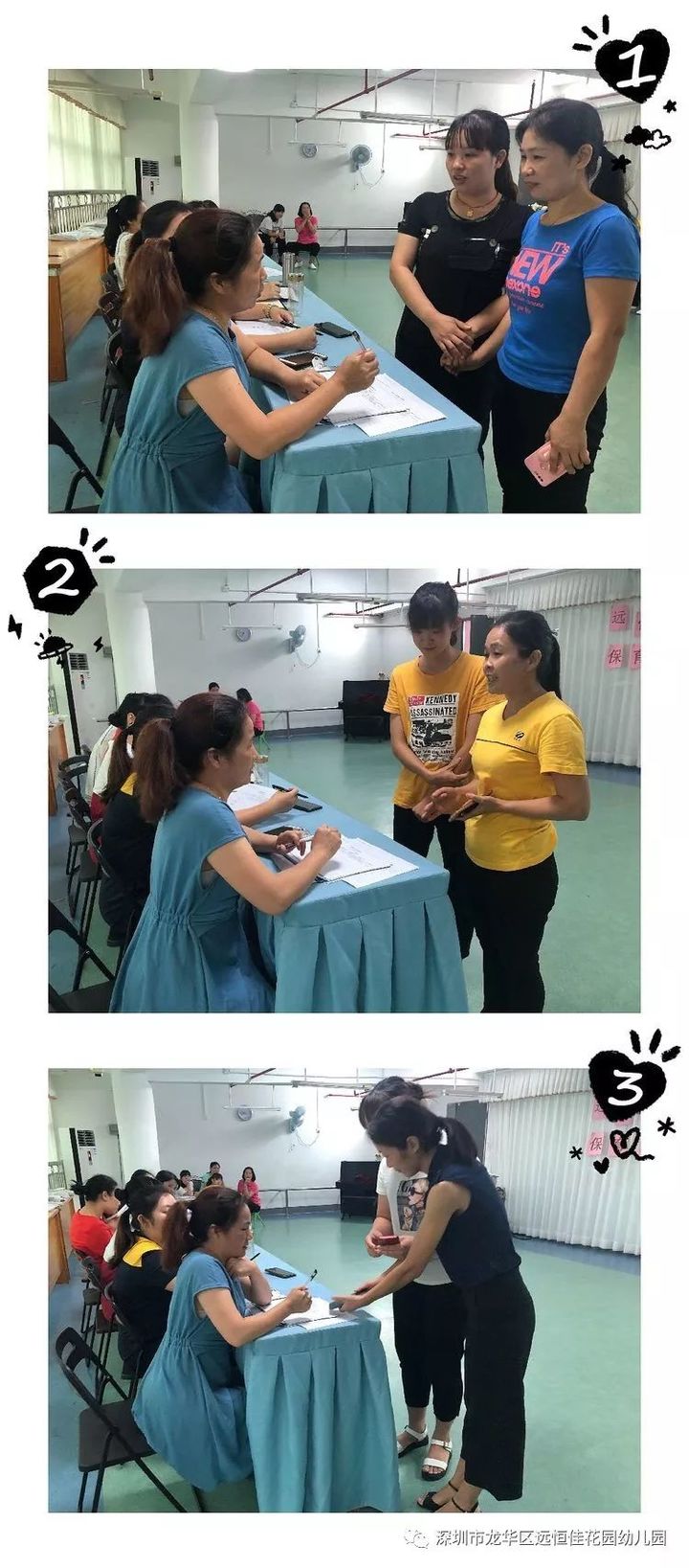 題目主要圍繞幼兒日常保育護(hù)理、消毒知識、規(guī)范行為等。時間為30分鐘。開始前所有保育老師都將自己的手機(jī)收好,她們正低頭思考,認(rèn)真做題。