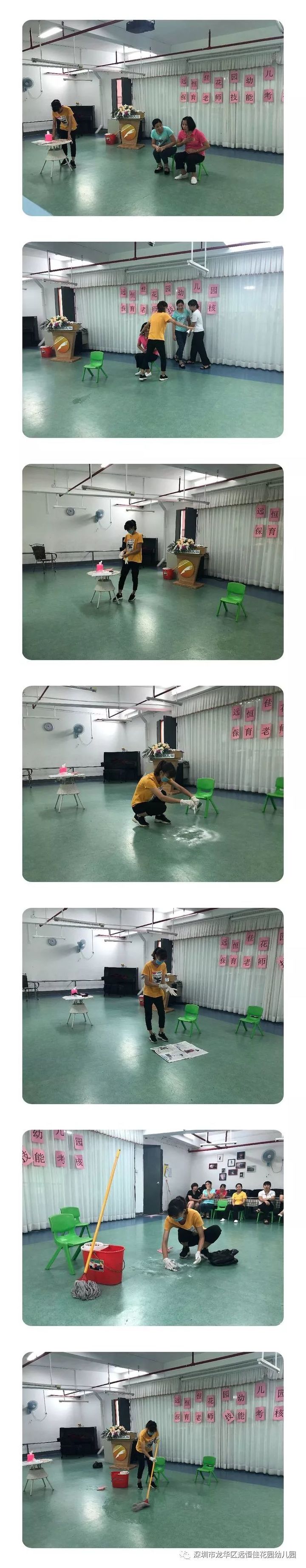 為貫徹《幼兒園工作規(guī)程》、《幼兒園教育指導(dǎo)綱要》、《廣東省幼兒園一日活動指引》精神,有效提高保育員業(yè)務(wù)素質(zhì),加強(qiáng)我園保育工作的整體水平,增強(qiáng)保育員對保育工作重要性的認(rèn)識,真正做到“保教結(jié)合,教養(yǎng)并重”,2019年5月23日上午,遠(yuǎn)恒佳花園幼兒園在音體室開展了保育知識與技能考核評比活動。