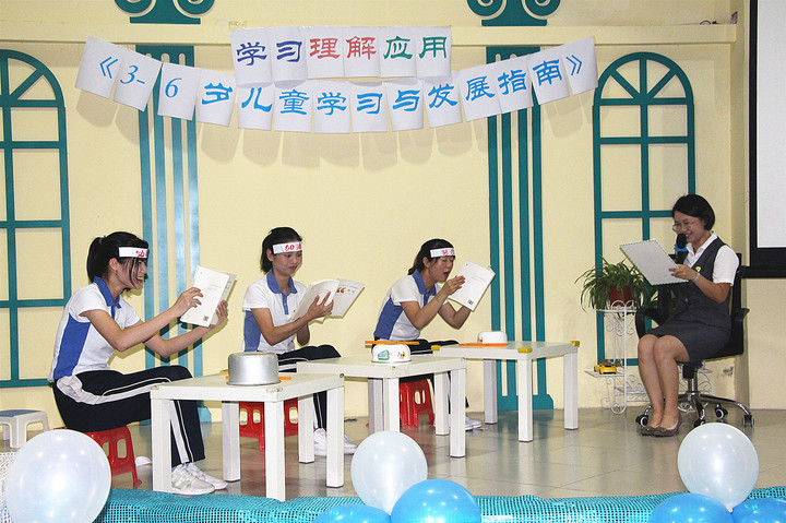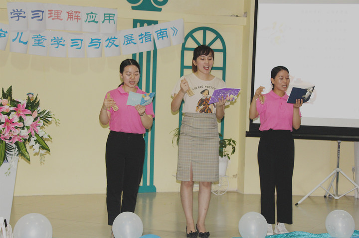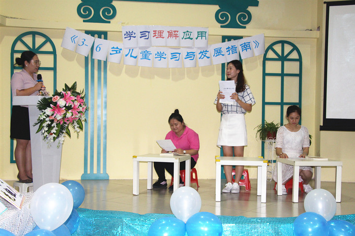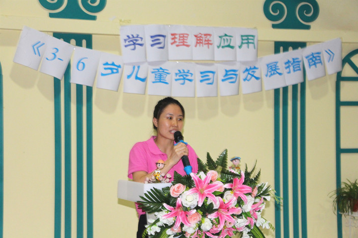 中班級組老師精彩的演講以及有趣的課堂情景劇表演為我們活靈活現(xiàn)的展示了《指南》研制的背景和作用。