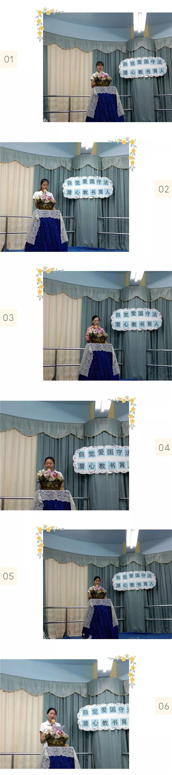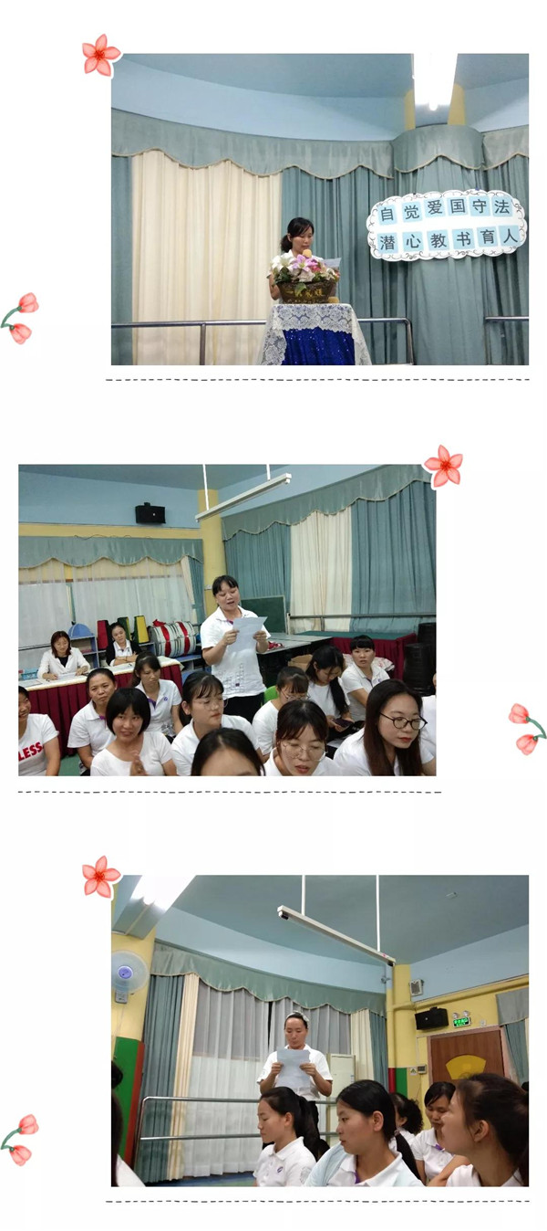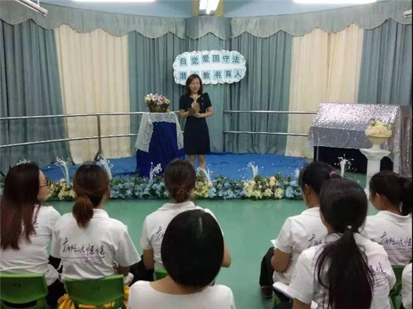 教師是太陽底下最光輝的職業(yè),是人類靈魂的工程師,是社會的規(guī)范、是人類的楷模。而作為一名幼兒教師這個神圣而又偉大的職業(yè),更是需要樹立以德育人、愛國守法的良好師德師風(fēng),為此碧水龍庭幼兒園于2019年10月28日晚上開展了“自覺愛國守法,潛心教書育人”的演講比賽活動。現(xiàn)在就讓我們跟著主持人一起去聆聽那美好的故事吧!