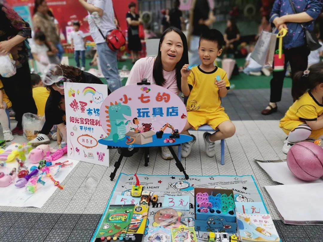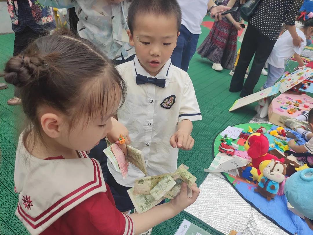 “小老板們”熱情地向小顧客推銷自己的商品,耐心地為小顧客們服務(wù)。小顧客悠閑地游走在各個(gè)攤位前,認(rèn)真地挑選心儀的商品,和“小老板”有模有樣地討價(jià)還價(jià),體驗(yàn)買(mǎi)賣(mài)帶來(lái)的快樂(lè)。
