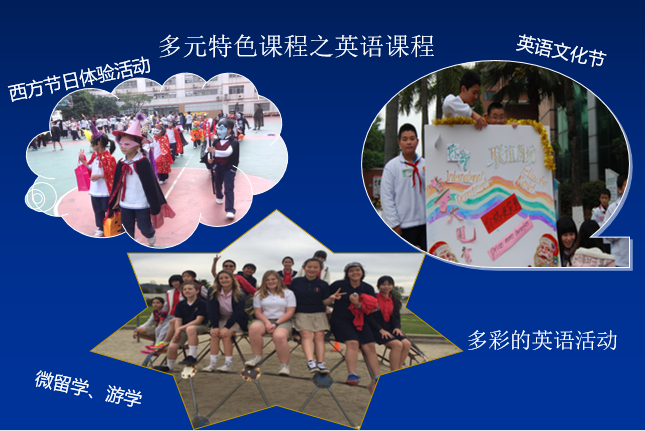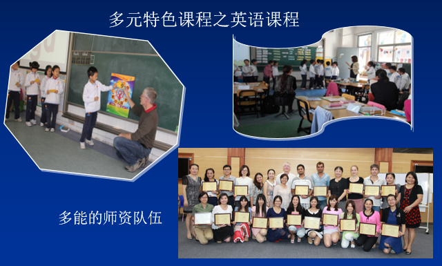 為了適應(yīng)小班化教育模式,學(xué)校創(chuàng)建了多元化課程體系,主要特色課程有:學(xué)習(xí)致用的英語(yǔ)課程、“每月一最”的德育課程、階梯分級(jí)的閱讀課程、全員學(xué)藝課程。