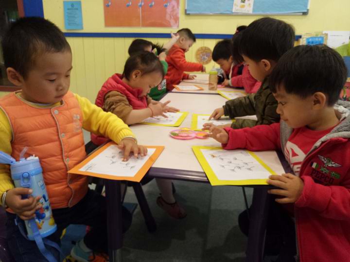 圖為 早教寶寶們?cè)谡J(rèn)真作畫(huà)