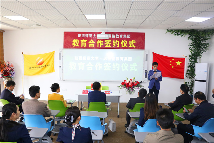 遠恒佳教育集團總校長、教育研究院院長畢國軍博士主持了簽字儀式,陜西師范大學畢業(yè)生就業(yè)指導服務(wù)中心雒朝梁主任宣讀教育合作協(xié)議書,遠恒佳教育集團董事長助理程琳娜和陜西師范大學黨委副書記盧勝利簽訂了合作協(xié)議書。