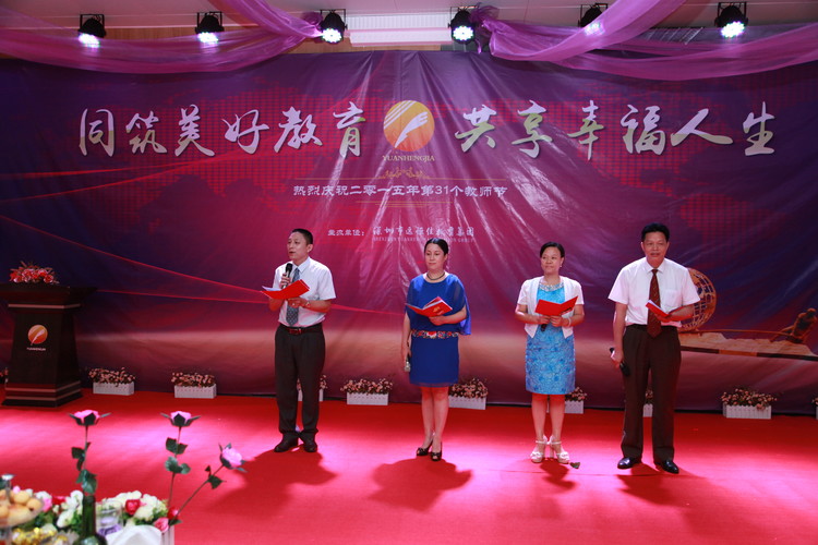 遠(yuǎn)恒佳教育集團(tuán)總裁宋遠(yuǎn)標(biāo)先生為慶祝活動(dòng)致辭。他代表董事會(huì)向遠(yuǎn)恒佳全體教職工致以節(jié)日的祝福,對(duì)全體教工為教育事業(yè)和學(xué)校發(fā)展所付出的辛勤勞動(dòng)與無私奉獻(xiàn)表示衷心的感謝,回顧了89年開辦安記餐廳、93年開辦遠(yuǎn)東裝飾部開始積累了辦學(xué)的第一桶金后,集團(tuán)辦學(xué)18個(gè)年頭的發(fā)展歷程,要求遠(yuǎn)恒佳人把心留住、用心工作、關(guān)注細(xì)節(jié)、傳播正能量、優(yōu)化服務(wù),勉勵(lì)大家實(shí)現(xiàn)教育集團(tuán)與自身發(fā)展的雙重飛躍,實(shí)現(xiàn)國際教育由規(guī)模發(fā)展轉(zhuǎn)型為高端發(fā)展,共同創(chuàng)建一流國際教育品牌;鼓勵(lì)大家滿懷創(chuàng)造的激情,用心、陽光、快樂、幸福地度過一生。宋總用真摯的心傳遞了他十八年來激情、執(zhí)著、不悔的教育情懷,表達(dá)了對(duì)全體遠(yuǎn)恒佳人深切的關(guān)愛。他說:“現(xiàn)在,我已不再屬于我自己,也不再屬于我的家人,我完完全全屬于1500名教師、15000名學(xué)生與家長。將來,我將永遠(yuǎn)屬于全體遠(yuǎn)恒佳人、遠(yuǎn)恒佳學(xué)生與家長”。他用愛心、責(zé)任、智慧和激情,用所有的時(shí)間去追尋自己的教育之夢,令人感動(dòng)。