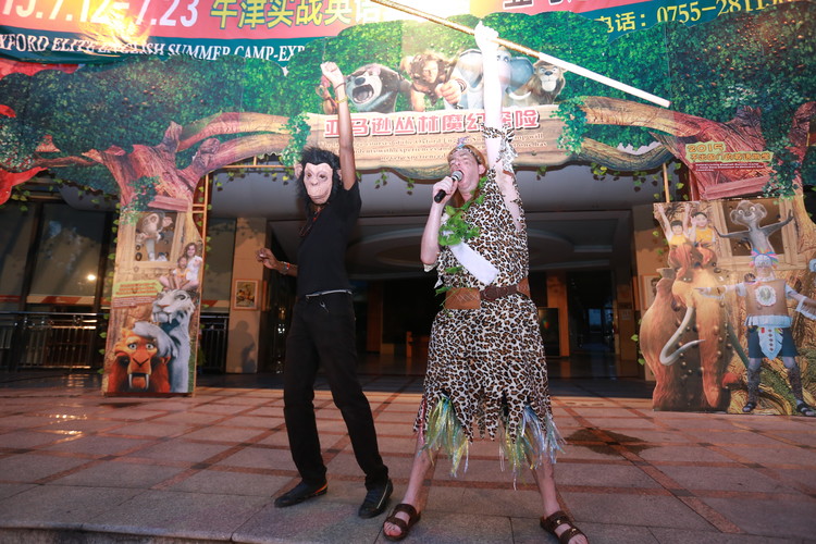 在亞馬遜叢林探險之篝火晚會上,備受同學(xué)們喜愛的外教Keiron(主持人)以一身“Tarzan”(人猿泰山)的裝扮出場,獨(dú)特風(fēng)格魅力,并攜帶著“大猩猩”bunbun,吸引了在場所有人的目光。外教們以叢林動物裝扮亮相時,活動現(xiàn)場響起一陣陣此起彼伏的歡呼聲,伴隨著熊熊燃燒的篝火一次次地將晚會推向新高潮。