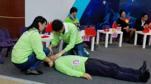 萬科園派出園內(nèi)唯一的男老師夏博、大A班張?zhí)硐鑻寢尅⑿班果果爸爸參與此次活動,活動內(nèi)容包了現(xiàn)場火災(zāi)逃生急救步驟的演練,以及幼兒常見疾病的緊急處理、急救措施現(xiàn)場實操等。萬科園的三位代表在活動現(xiàn)場表現(xiàn)得沉著冷靜,以優(yōu)異的成績給本次活動增添色彩,熱心的啦啦隊員們將本次活動推向歡樂的頂峰。