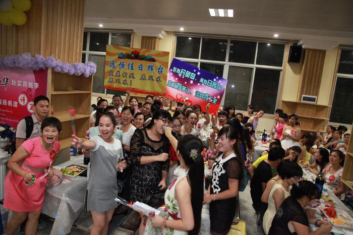 以“堅定尋夢之履,同賀幸福人生”為主題的第30次教師節(jié)慶祝活動在集團董事會的親自組織領(lǐng)導(dǎo)下,盛況空前,創(chuàng)意無限,充分顯現(xiàn)了尊尚師風,以師為本的管理理念。活動以各校園教師有序的“紅毯秀” 隆重拉開了序幕,用老師們的話說“今天當了一次明星,還有董事長和校領(lǐng)導(dǎo)親自鞠躬贈送鮮花,備受尊榮和感動”。當晚慶祝活動形式多樣,不拘一格,大家品著香檳、吃著點心,載歌載舞、笑語歡騰。特別是龍華中英文實驗幼兒園的外教男老師們的幽默反串,其花姿招展、故炫妖媚之態(tài),為會場增添不少亮色,讓老師們歡笑不斷;龍華校高中美術(shù)教師趙海鵬,揮毫潑墨創(chuàng)作了8幅書法長匾,現(xiàn)場贈送給龍華校,陣陣翰墨書香飄蕩著遠恒佳人對學校的濃濃深情,讓人肅然起敬。還有其他校園帶來的充滿活力與激情的歌舞、充分彰顯了遠恒佳人的多才多藝、陽光與智慧。活動在各校園的歌手們自由點歌放歌中,在領(lǐng)導(dǎo)老師們的群舞歡騰中圓滿結(jié)束。