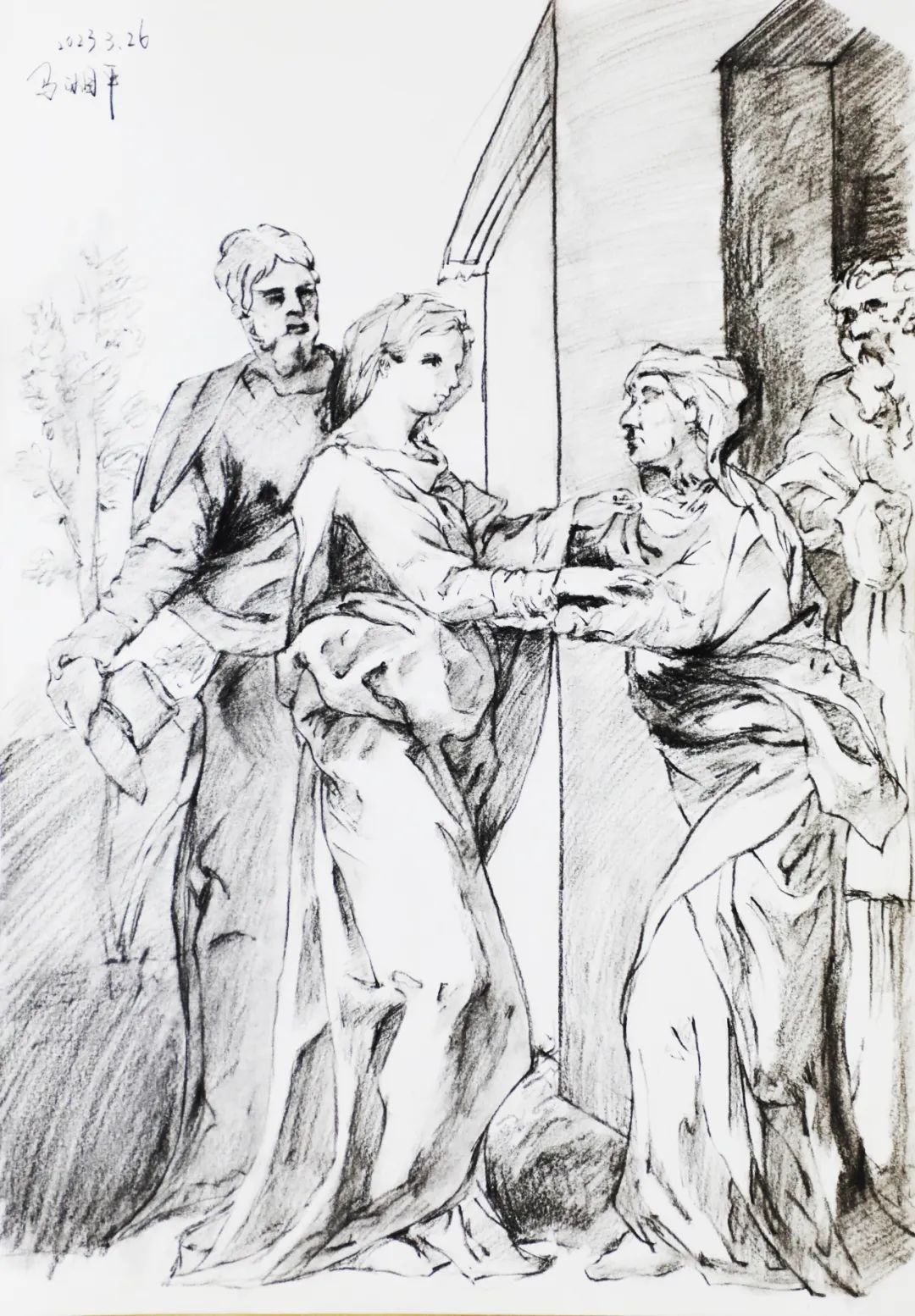 速寫是一種相對快速的素描形式。所選學(xué)生速寫作品畫面干凈,構(gòu)圖舒適,線條流暢度高,疏密、粗細(xì)、虛實(shí)變化表現(xiàn)好,體積感強(qiáng),人物造型動(dòng)態(tài)比例準(zhǔn)確,畫面節(jié)奏感、黑白灰處理明確,速寫味濃。