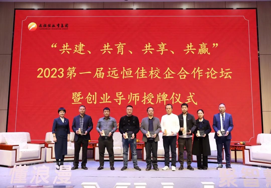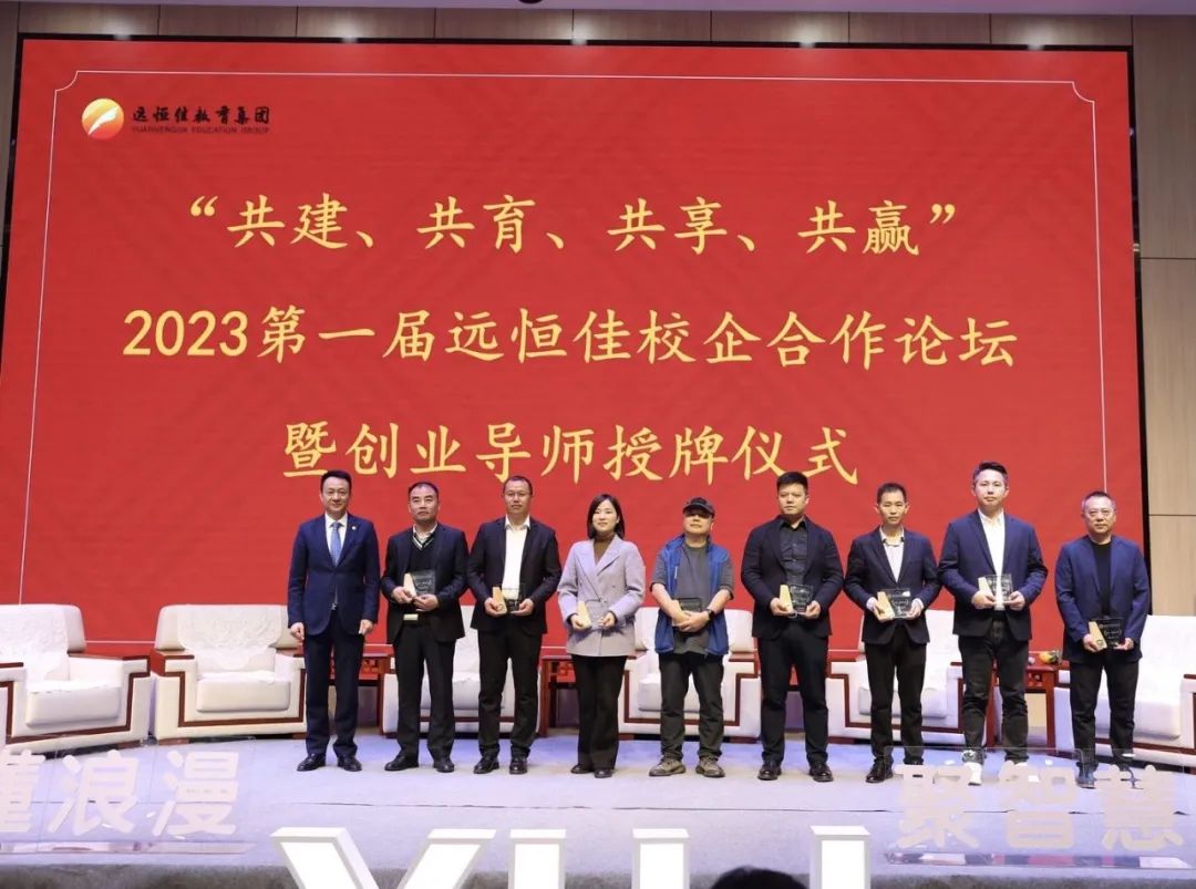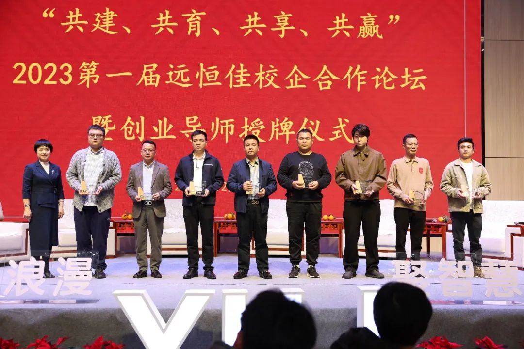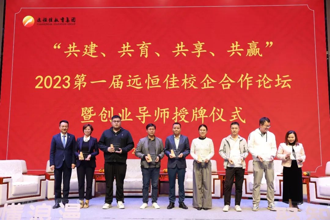 遠(yuǎn)恒佳現(xiàn)代產(chǎn)業(yè)學(xué)院首創(chuàng)了公司制職業(yè)教育模式,學(xué)生組建28人創(chuàng)業(yè)小組,成立了創(chuàng)業(yè)公司,通過(guò)企業(yè)課堂、企業(yè)家大講堂、公司例會(huì)和創(chuàng)業(yè)實(shí)踐項(xiàng)目等,開(kāi)展創(chuàng)新創(chuàng)業(yè)學(xué)習(xí)實(shí)踐。為更好地實(shí)施公司制教育模式,本屆論壇聘任了40位企業(yè)家擔(dān)任創(chuàng)業(yè)導(dǎo)師,隆重舉行創(chuàng)業(yè)導(dǎo)師授牌儀式。遠(yuǎn)恒佳教育集團(tuán)宋遠(yuǎn)標(biāo)董事長(zhǎng)、麥麗芬副董事長(zhǎng)向創(chuàng)業(yè)導(dǎo)師們頒發(fā)了導(dǎo)師牌匾。