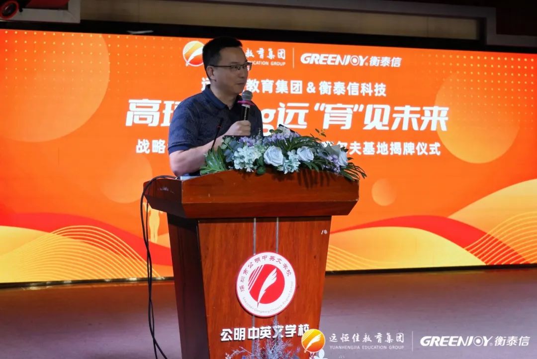 2023年10月29日,遠(yuǎn)恒佳教育&衡泰信科技戰(zhàn)略合作簽約儀式暨青少年高爾夫基地揭牌儀式在公明中英文學(xué)校隆重舉行。深圳市遠(yuǎn)恒佳教育集團(tuán)總裁宋遠(yuǎn)標(biāo)、副總裁麥麗芬、副總裁宋騰、深圳市衡泰信科技有限公司總經(jīng)理王繼軍、公司市場(chǎng)部、運(yùn)營(yíng)部負(fù)責(zé)人出席活動(dòng),公明中英文學(xué)校校長(zhǎng)周文霞、副校長(zhǎng)李莉萍及師生家長(zhǎng)代表參與活動(dòng)
