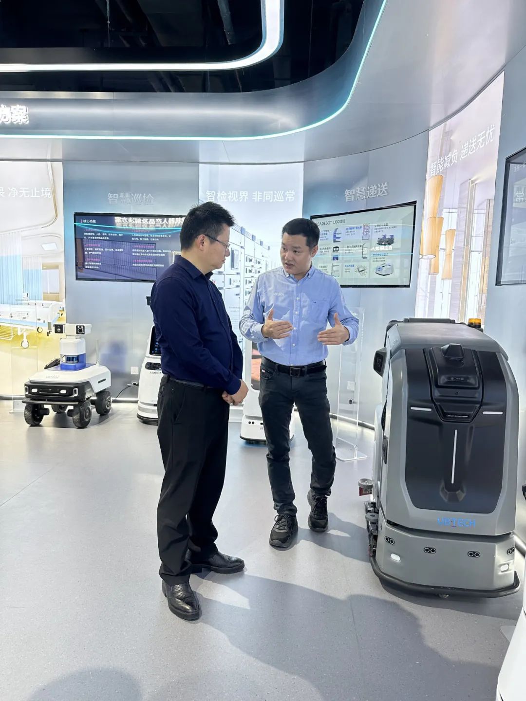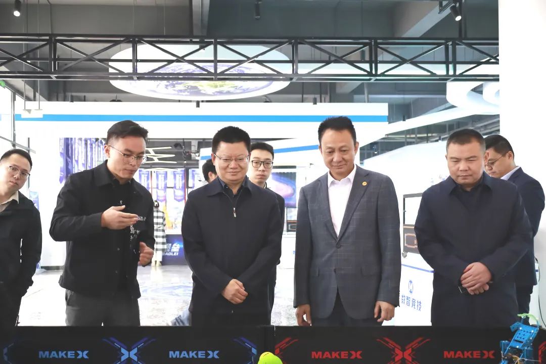 在科創(chuàng)中心,宋遠標(biāo)董事長對于目前場館建設(shè)現(xiàn)狀及課程開展情況進行了詳細介紹,并陪同長壽區(qū)政府考察團一行進行體驗觀摩了教學(xué)區(qū)、人工智能區(qū)等多個板塊。