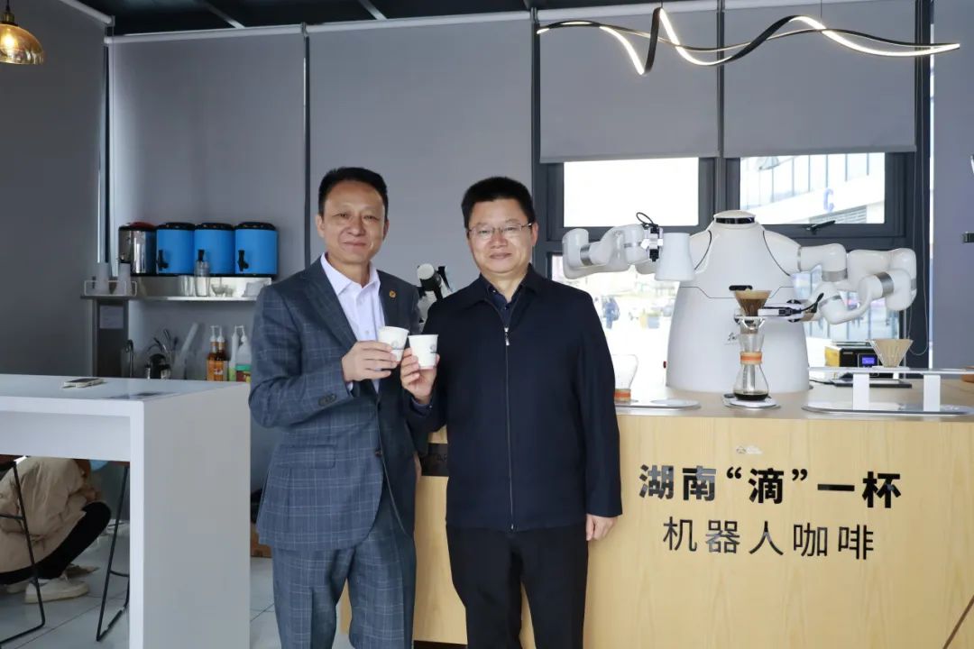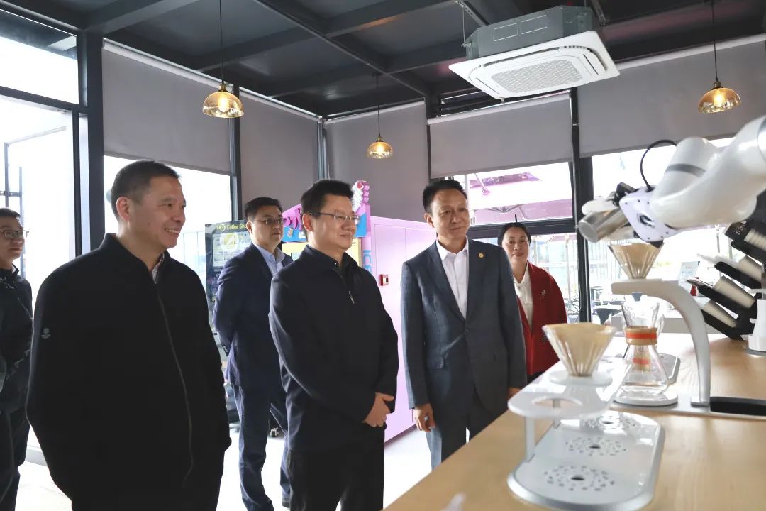 隨后,宋遠標(biāo)董事長陪同長壽區(qū)政府考察團移步機器人咖啡屋,正在沖泡咖啡的智能機器人,吸引了考察團的領(lǐng)導(dǎo)們駐足。