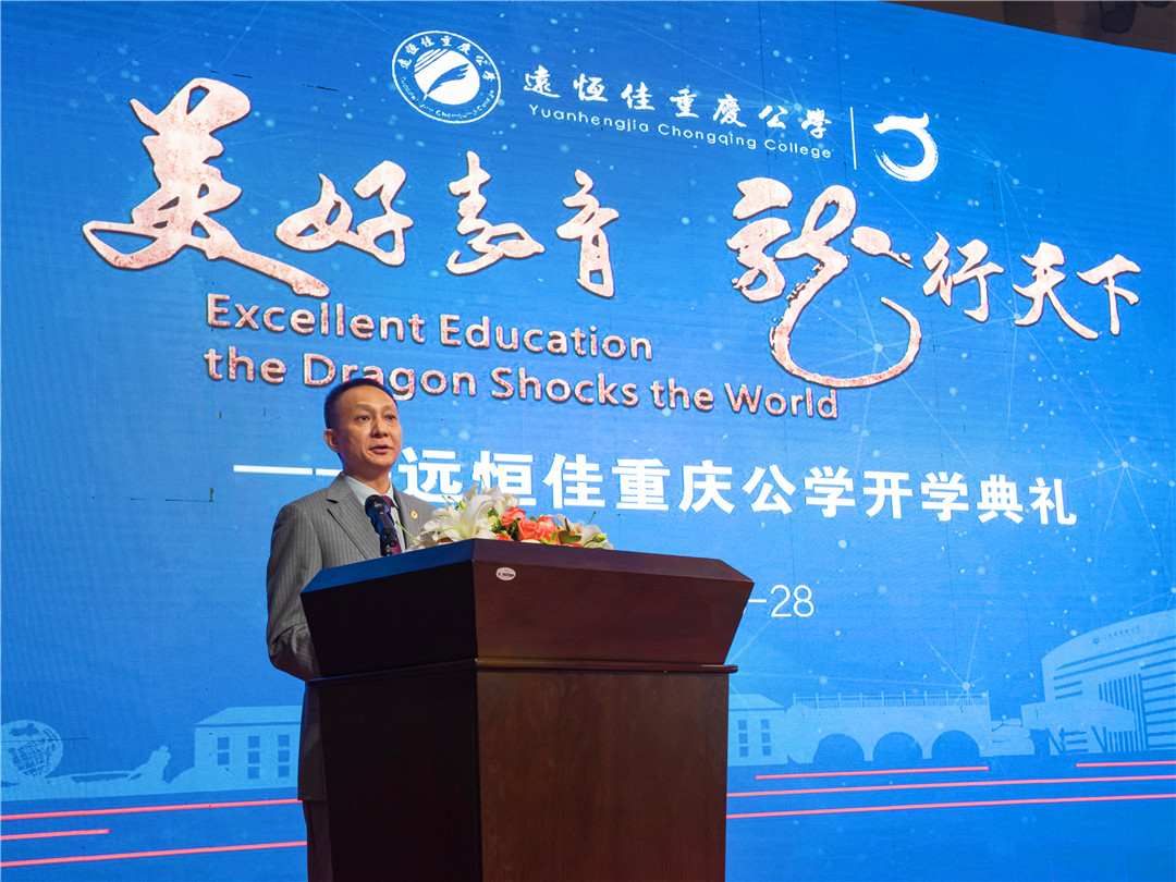十點三十分,在全校師生的歡呼聲中,深圳市遠恒佳教育集團董事長宋遠標先生致辭并宣布遠恒佳重慶公學正式開學。總校長王振權先生在講話中提出了“六個最”的辦學方向——“最課程”、“最校園”、“最精英”、“最環(huán)境”、“最理念”、“最未來”,揭開了公學教學的新篇章。美國合作校索斯蘭國際學校校董鄧肯先生致辭,對公學優(yōu)美如畫的環(huán)境、豐富的教育資源、國際化辦學贊不絕口。