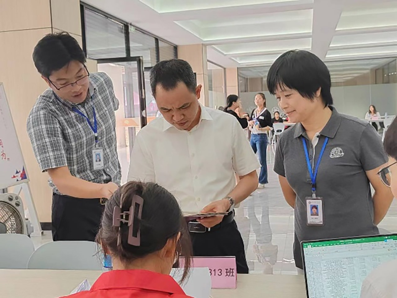 迎新期間,院長、辦公室主任、各科室負(fù)責(zé)人、各系部帶頭人來到新生報到現(xiàn)場,了解迎新工作的開展情況,問候關(guān)懷堅守一線的工作人員和學(xué)生志愿者,并在現(xiàn)場身體力行地做出表率,以飽滿的熱情迎接新生,與其親切交流,及時了解需求,言辭與行動中盡顯關(guān)心與愛護(hù)。現(xiàn)場工作在如此和諧融洽的氛圍中有序進(jìn)行。