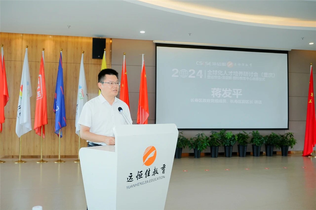 蔣發(fā)平在致辭中說,長壽區(qū)正加快推進國際化綠色化智能化人文化中國長壽城建設(shè),全球化人才培養(yǎng)研討會暨遠恒佳?渝留服—國際教育中心的啟幕,將帶來更多與國際接軌的教育機會,吸引更多國際教育資源落地長壽。要充分利用好這一交流平臺,積極搭建國際教育“連心橋”,努力拓展國際教育“朋友圈”,讓更多長壽師生走出國門、走向世界,拓展國際視野、參與國際交流,共同助力長壽國際化教育事業(yè)大步前行。